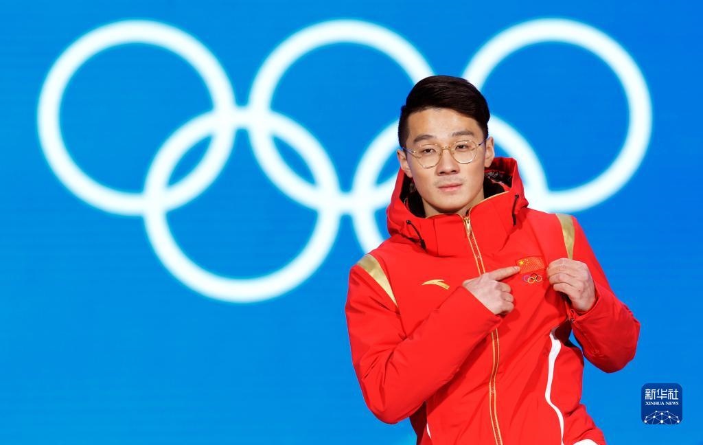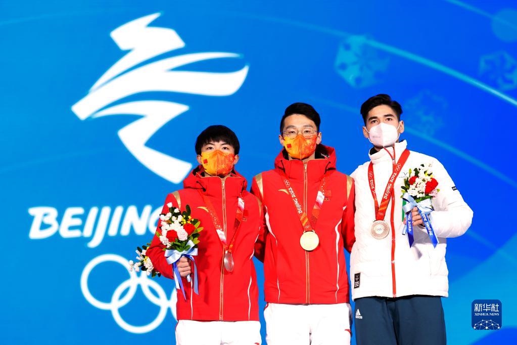 當(dāng)日,北京2022年冬奧會(huì)短道速滑男子1000米獎(jiǎng)牌頒發(fā)儀式在北京賽區(qū)頒獎(jiǎng)廣場舉行。