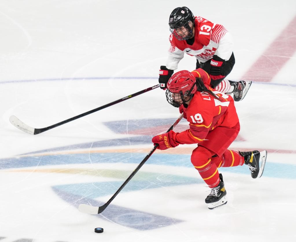 2月6日,中國(guó)隊(duì)球員胡寶珍(左)在比賽中。 新華社記者 孟永民 攝