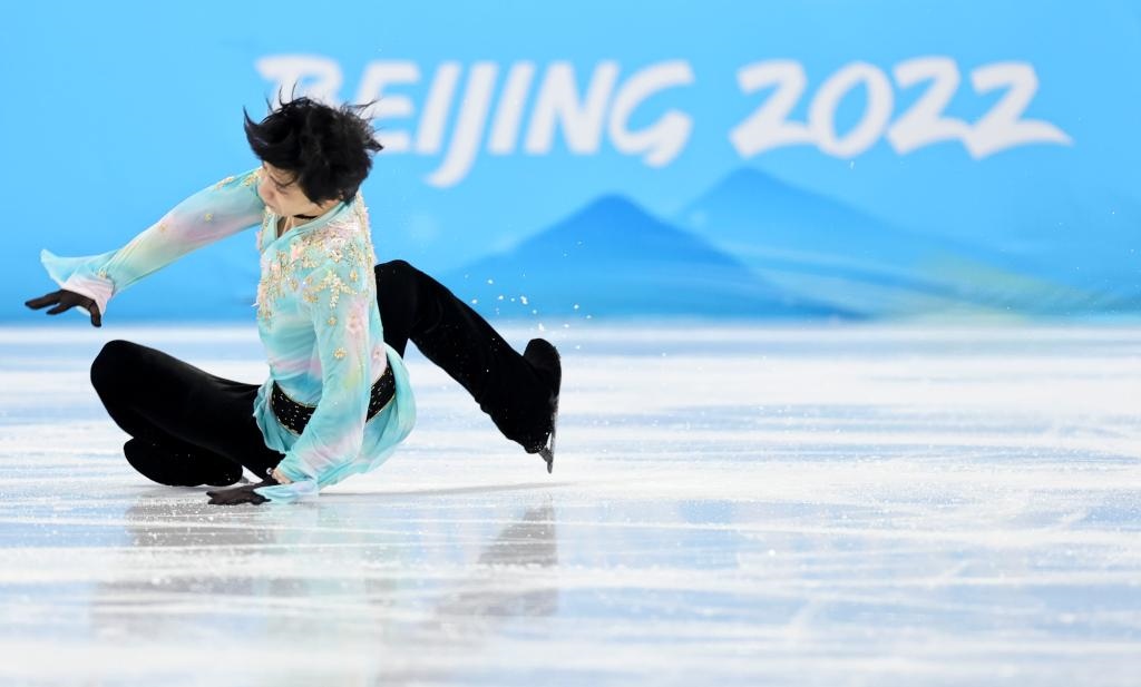 2月10日,日本選手羽生結弦在男單自由滑比賽中失誤。新華社記者蘭紅光攝