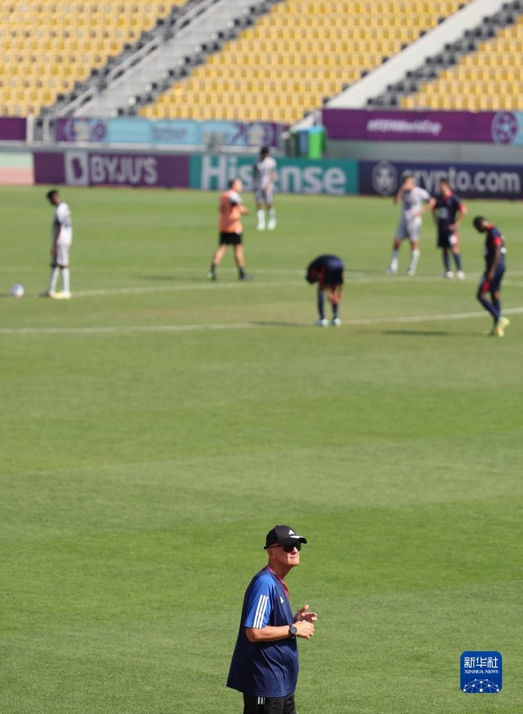 11月18日,國際足聯(lián)裁判委員會主席皮耶路易吉·科利納(下)觀看訓(xùn)練。新華社記者 賈浩成 攝
