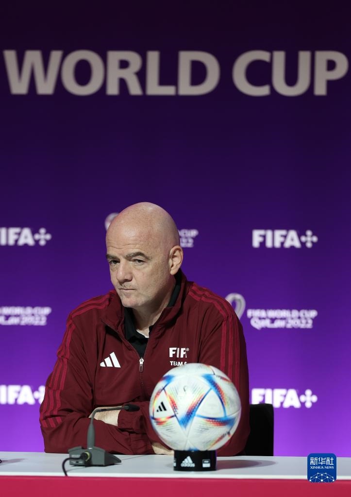 11月18日,國際足聯(lián)主席因凡蒂諾在通氣會上。新華社記者 賈浩成 攝