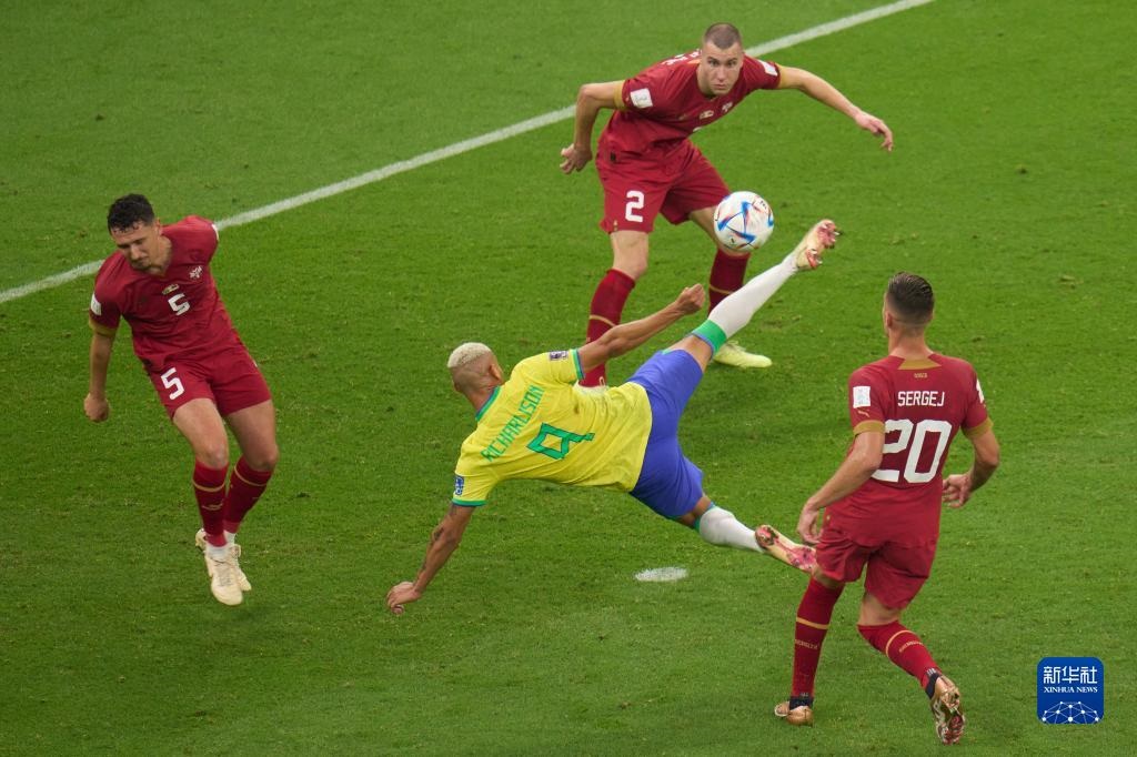 當(dāng)日,在卡塔爾盧賽爾球場進(jìn)行的2022卡塔爾世界杯足球賽G組比賽中,巴西隊(duì)以2比0戰(zhàn)勝塞爾維亞隊(duì)。