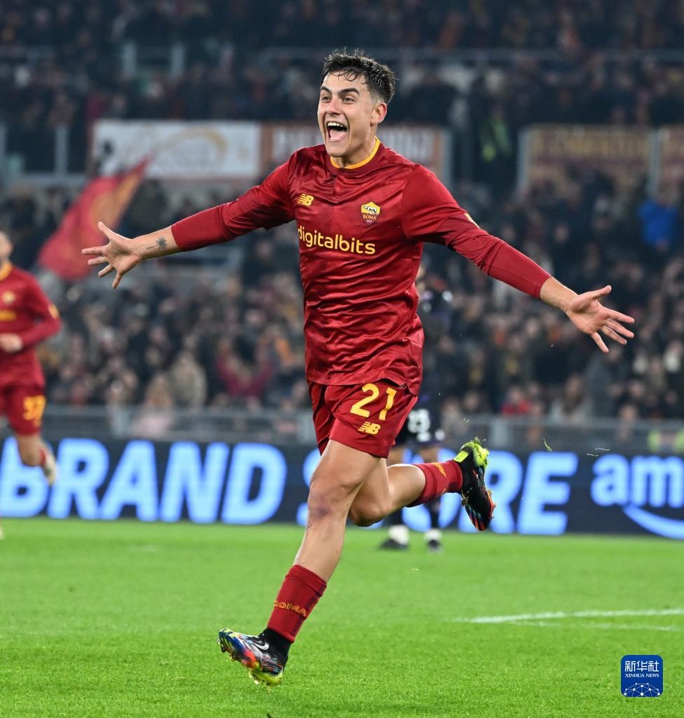 1月15日,羅馬隊球員迪巴拉進(jìn)球后慶祝。新華社發(fā)(阿爾貝托·林格利亞攝)