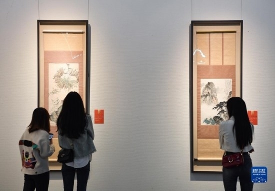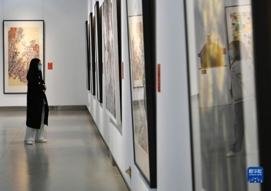 4月6日,觀眾在長(zhǎng)安畫派藝術(shù)中心觀賞美術(shù)作品。