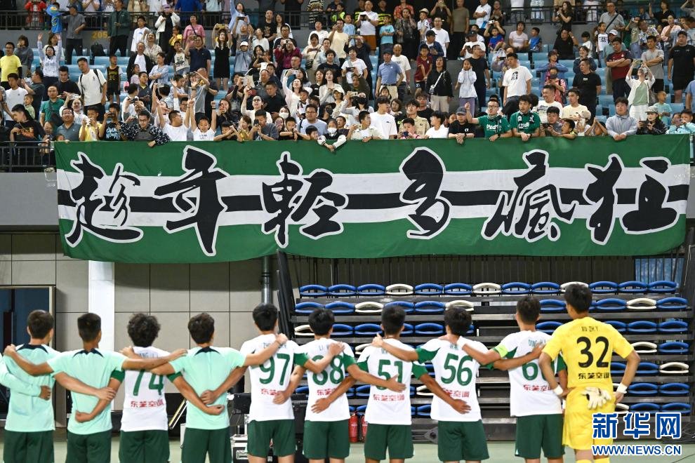 ??6月15日,浙江俱樂部U21隊(duì)球員在賽后向球迷致意。