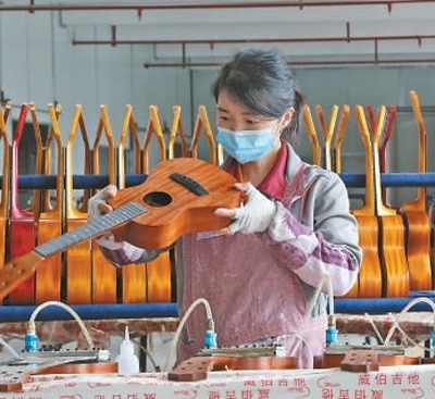 “培育吉他文化,最終是為了發(fā)展產(chǎn)業(yè)。”2020年,曾經(jīng)在吉他廣場上組織過樂隊的音樂愛好者薛軍加入了縣里成立的吉他文化推廣專班,搬到了吉他文化產(chǎn)業(yè)園內(nèi)工作。在他看來,吉他文化一頭連著工業(yè),一頭連著旅游,“一方面,可以培育吉他消費(fèi)群體;另一方面,濃厚的吉他文化氛圍也能吸引游客,促進(jìn)旅游業(yè)的發(fā)展。”