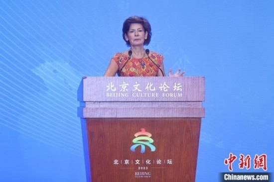 9月15日,法國漢學(xué)家、作家柯思婷·佳玥在2023北京文化論壇“文明互鑒:相互尊重與合作發(fā)展”平行論壇上發(fā)表演講。 中新社記者 易海菲 攝