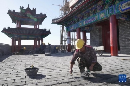 11月1日,工人在河北省張家口市萬全右衛(wèi)城長城國家文化公園文旅融合區(qū)項目建設工地施工。