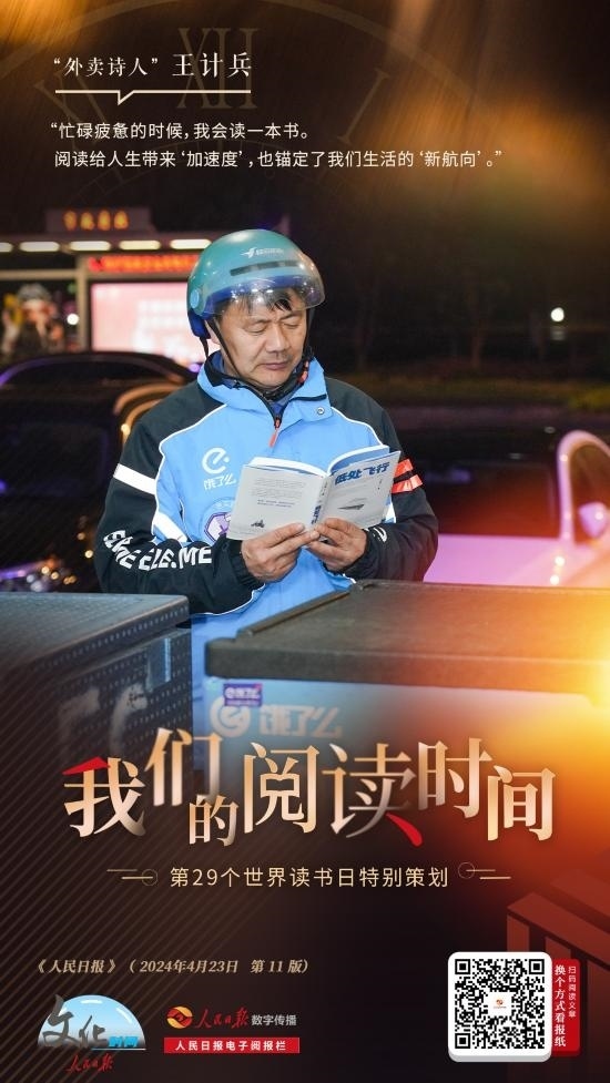 “我的外賣箱里總會(huì)放一本書,在等外賣的間隙或者訂單空閑的時(shí)候看,現(xiàn)在主要在手機(jī)上閱讀。”如今,王計(jì)兵已創(chuàng)作5000多首詩(shī)歌,出版3本詩(shī)集,還在進(jìn)行非虛構(gòu)寫作。他說(shuō):“閱讀給我的人生帶來(lái)‘加速度’,為忙碌的生活錨定方向感?!?/p>