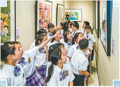 學生們在余東村美術館參觀。李 東攝