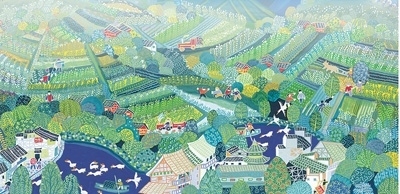 農民畫里的余東村。鄭利民繪