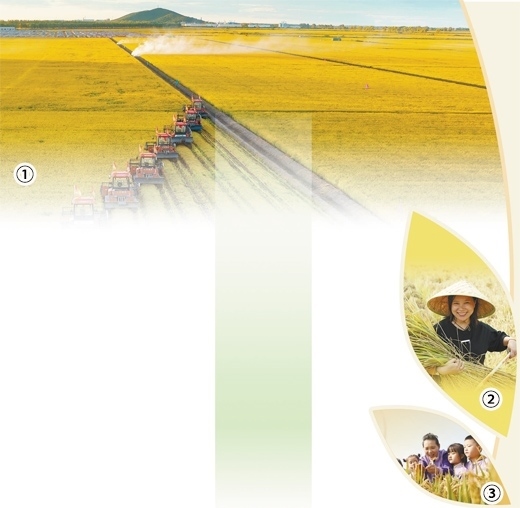 圖①:黑龍江省佳木斯市北大荒千萬畝水稻開鐮。國 徽攝(影像中國) 圖②:河北省唐山市水稻喜獲豐收。朱大勇攝(人民視覺) 圖③:山東省臨沂市沂南縣大莊鎮(zhèn)翔宇幼兒園的小朋友在稻田聽老師講解水稻種植知識(shí)。杜昱葆攝(人民視覺)