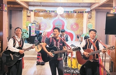 在云南省瀾滄拉祜族自治縣,拉祜族房東扎努的民宿在國(guó)慶節(jié)假期迎來(lái)滿房。今年4月,扎努改造自家老房子,把民族音樂(lè)與民宿相結(jié)合,開(kāi)了一家音樂(lè)民宿——拉祜音宿?!袄镒迨悄芨枭莆璧拿褡濉N蚁矚g與人交流,喜歡鄉(xiāng)村風(fēng)光和家鄉(xiāng)氣候,所以選擇回鄉(xiāng)開(kāi)民宿?!弊鳛榉繓|,扎努常常帶游客一起唱歌跳舞,表演他創(chuàng)作的《我在瀾滄等你》《快樂(lè)拉祜》等歌曲,并向他們介紹拉祜族的民族歷史和文化。