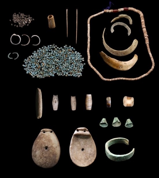 西藏康馬瑪不錯遺址出土的第二期遺物(石質(zhì)、骨質(zhì)、金屬裝飾品,骨針、滑石珠、紅玉髓、玻璃珠等)。(全國十大考古新發(fā)現(xiàn)活動辦公室供圖)