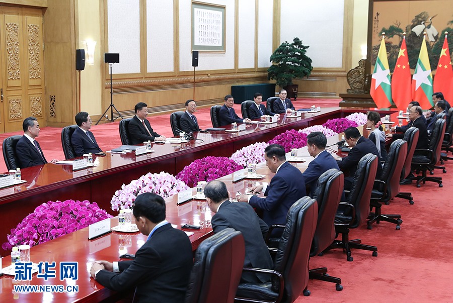 習近平指出,中緬“胞波”情誼深厚,共飲一江水,是命運共同體。新形勢下,中方愿同緬方弘揚傳統(tǒng)友誼,密切互利合作,推動中緬關(guān)系不斷向前發(fā)展。雙方要結(jié)合明年中緬建交70周年慶?;顒?,積極開展各層級交往和人文交流,將兩國務(wù)實合作更多向民生領(lǐng)域傾斜,不斷夯實中緬友好的民意基礎(chǔ)。中方支持緬方發(fā)展經(jīng)濟、改善民生,贊賞緬甸政府推進國內(nèi)和平和解的努力。中方愿同緬方共同維護中緬邊境安全穩(wěn)定,切實保障邊民安全和正常秩序。