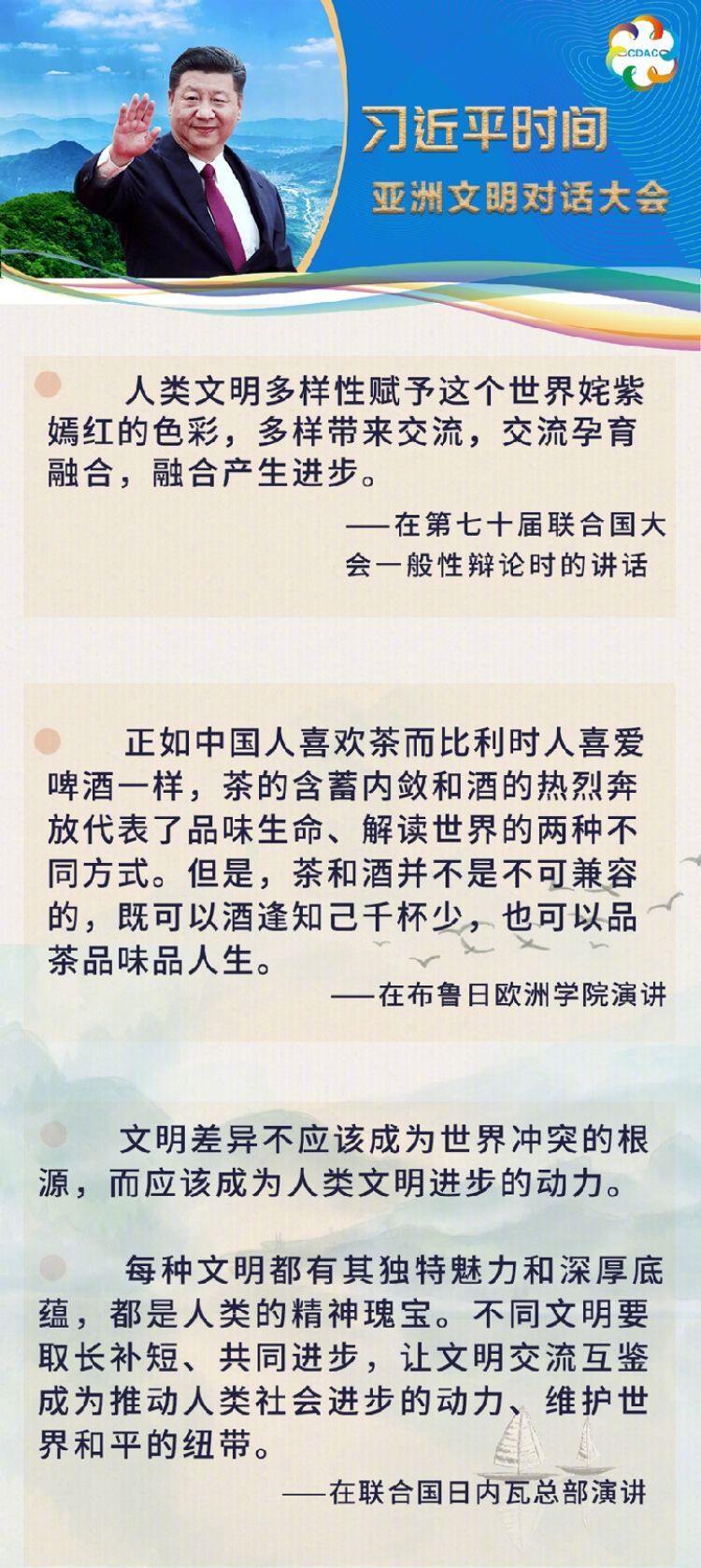 “在漫長歷史長河中,如亞洲的黃河和長江流域、印度河和恒河流域、幼發(fā)拉底河和底格里斯河流域以及東南亞等地區(qū)孕育了眾多古老文明,彼此交相輝映、相得益彰,為人類文明進(jìn)步作出了重要貢獻(xiàn)。今天的亞洲,多樣性的特點(diǎn)仍十分突出,不同文明、不同民族、不同宗教匯聚交融,共同組成多彩多姿的亞洲大家庭。”