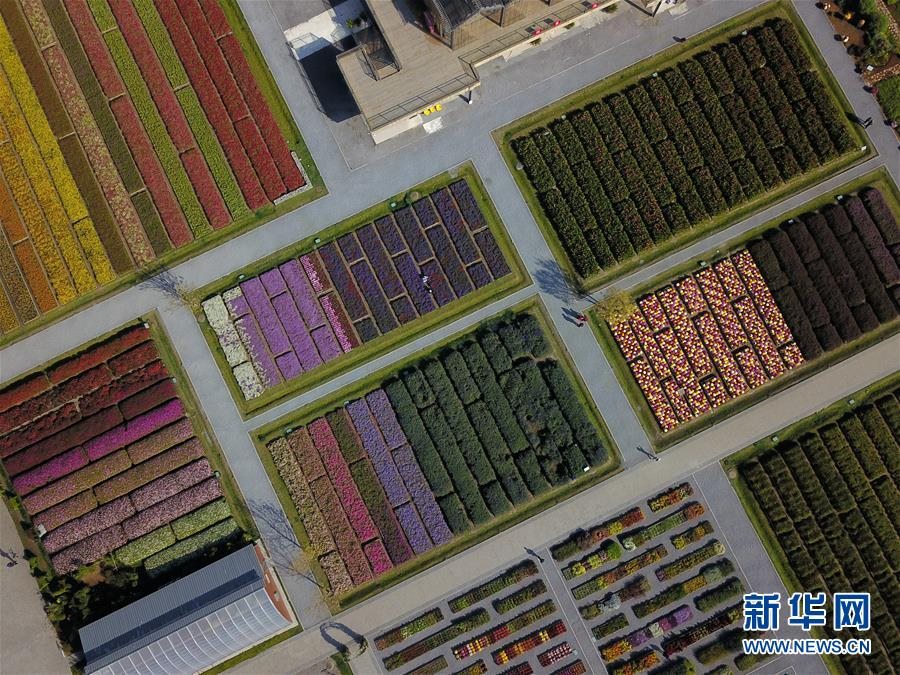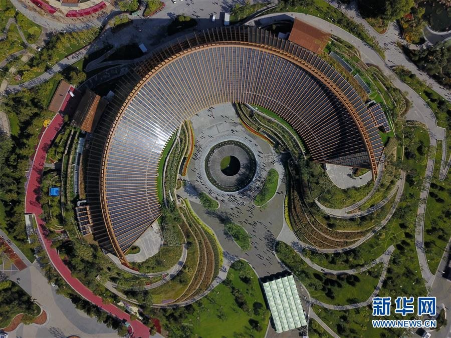 這是北京世園會園區(qū)一角(10月7日無人機拍攝)。