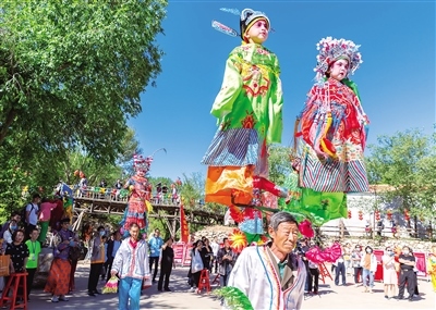 6月13日,民間藝人在內(nèi)蒙古2020年“文化和自然遺產(chǎn)日”非遺宣傳展示系列活動(dòng)開幕式活動(dòng)現(xiàn)場(chǎng)表演國家級(jí)非物質(zhì)文化遺產(chǎn)“腦閣”。內(nèi)蒙古日?qǐng)?bào)社融媒體記者 王磊 攝