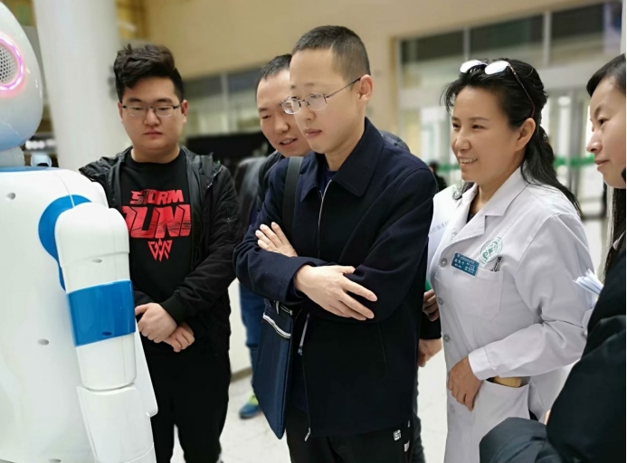 趙俊葉與患者一起體驗導(dǎo)診機(jī)器人預(yù)約
