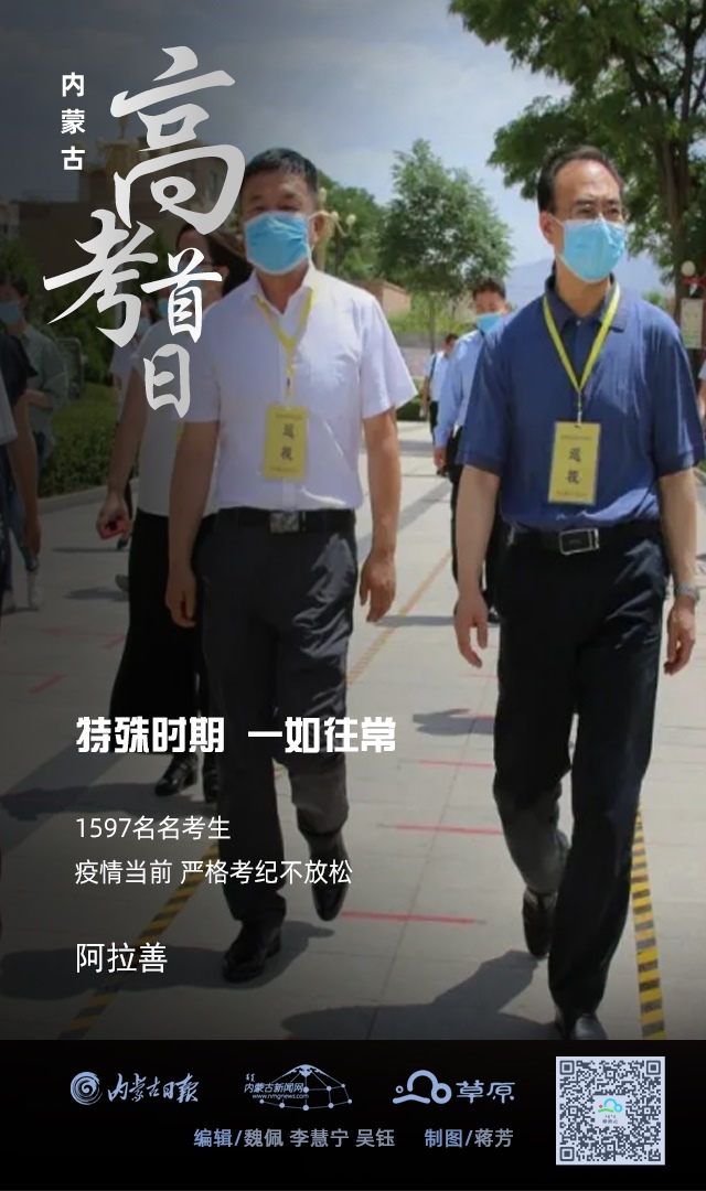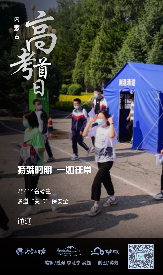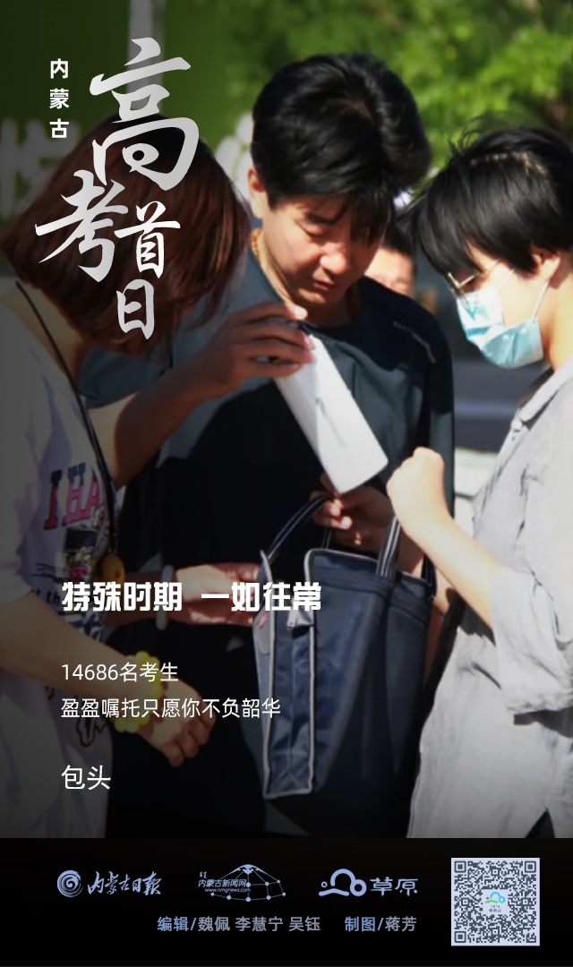 今年,我區(qū)高考報名總?cè)藬?shù)197901人,其中參加全國統(tǒng)一考試163812人。全區(qū)共設(shè)105個考區(qū)、184個考點(diǎn)、5786個考場。內(nèi)蒙古各盟市全力做好防護(hù)與保障工作,高考首日,一如往常。