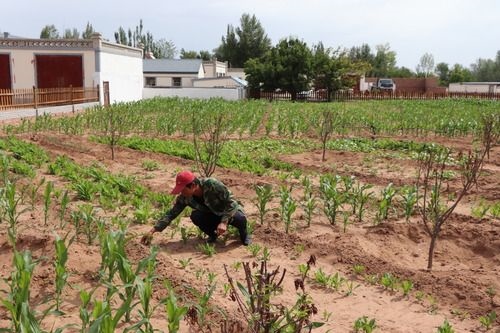 ↑燕永發(fā)在收拾自家菜地(6月24日攝)。
