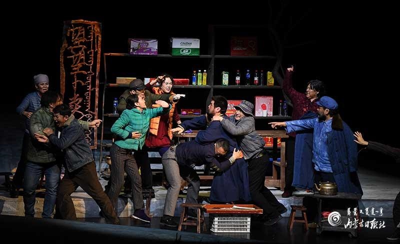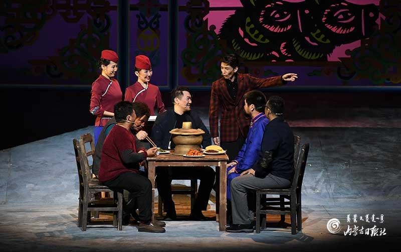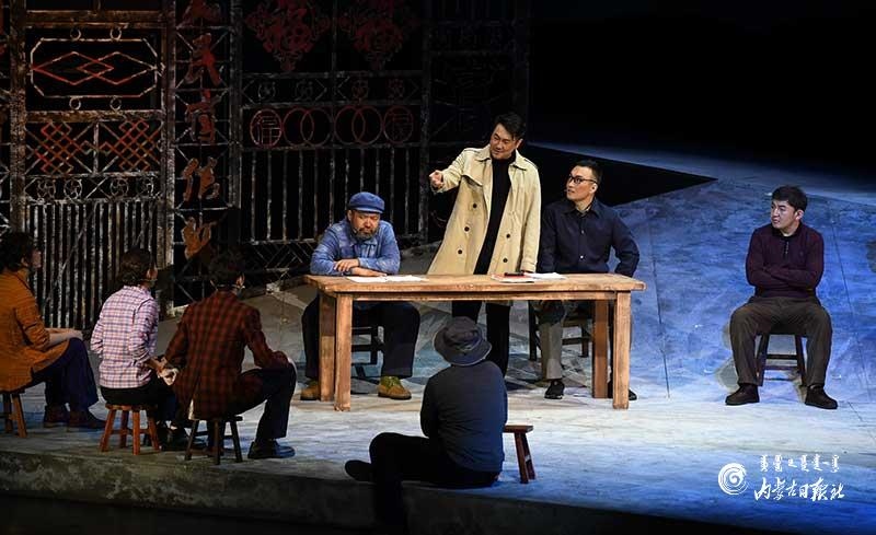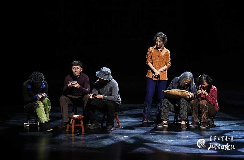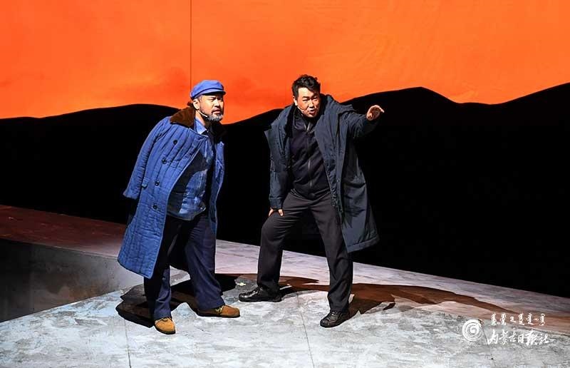 參演《紅手印》的都是來自草原的蒙古族演員,不僅要完成漢語的臺詞,還要熟練自然地講出大量內(nèi)蒙古西部方言對白?!皩τ谠拕⊙輪T來說,臺詞功底太重要了。為了練好方言,我們好多演員早起練功的時候嘴里都念念有詞地說著西部方言?!毖輪T烏仁朝魯門說。他扮演的新扎木村主任令人印象深刻,一個一心想帶百姓致富卻屢遭失敗的老黨員形象?!爸氨硌輾v史題材的話劇大多是從影像和資料了解人物,這部戲的題材貼近觀眾們的現(xiàn)實(shí)生活,必須接地氣才能得到認(rèn)可。我通過寫人物小傳的方式,深挖村主任的人物個性和從失望到燃起希望的內(nèi)心世界,讓觀眾能夠認(rèn)可這個形象?!睘跞食旈T說。