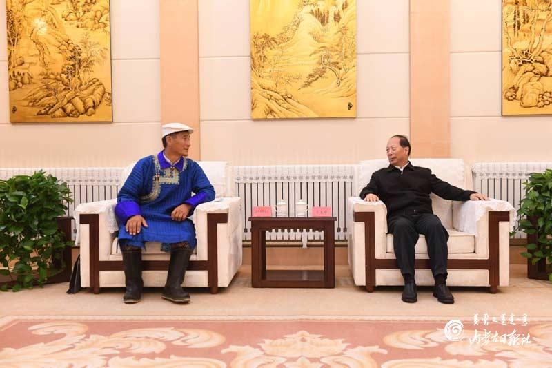 7月29日,自治區(qū)黨委書記、人大常委會主任石泰峰在主持召開草原生態(tài)保護(hù)補(bǔ)助獎勵政策實施情況專題匯報會前,會見自治區(qū)人大代表浩畢斯嘎拉圖。內(nèi)蒙古日報記者袁永紅攝