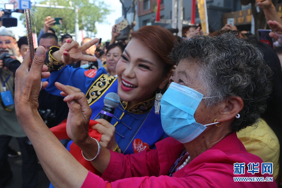 開(kāi)幕式上歌手烏蘭圖雅與觀眾互動(dòng)。新華網(wǎng) 李倩攝