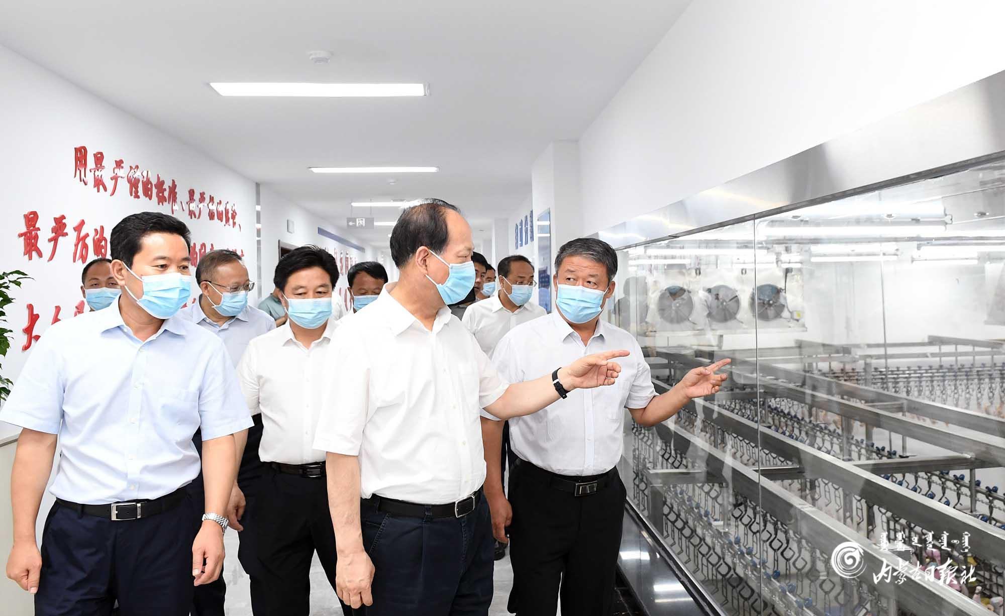 8月18日,自治區(qū)黨委書記、人大常委會(huì)主任石泰峰來到巴彥淖爾市五原縣潤(rùn)海源8000萬只肉雞屠宰加工廠,了解經(jīng)營(yíng)情況。內(nèi)蒙古日?qǐng)?bào)記者 袁永紅 攝