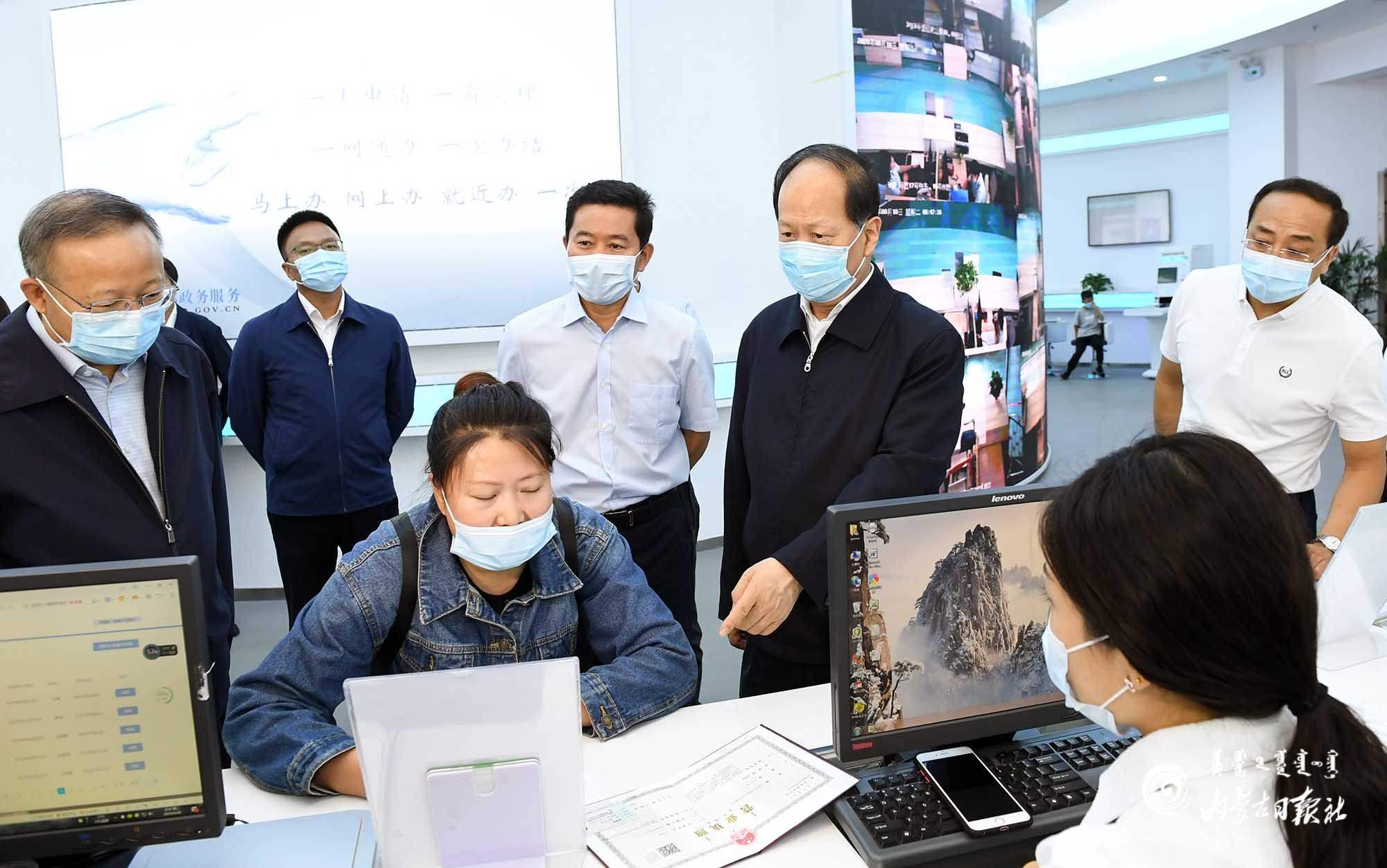 8月18日,自治區(qū)黨委書記、人大常委會(huì)主任石泰峰來到巴彥淖爾市臨河區(qū)市政服務(wù)中心,了解正在辦理企業(yè)注冊(cè)服務(wù)平臺(tái)流程。內(nèi)蒙古日?qǐng)?bào)記者 袁永紅 攝