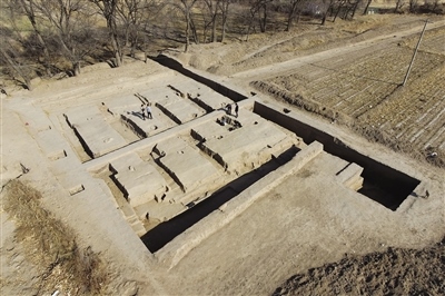 11月10日,航拍呼和浩特市玉泉區(qū)沙梁子村的西漢中晚期疑似大型糧倉建筑基址發(fā)掘現(xiàn)場。近日,內(nèi)蒙古文物考古研究所與中山大學(xué)組成的聯(lián)合考古隊(duì)在沙梁子村揭露一處大型夯土高臺建筑基址,根據(jù)出土的磚瓦材料及夯臺建筑的形制推測,可能是一座西漢時(shí)期的大型倉儲(chǔ)建筑,距今約2000多年。這是我國迄今發(fā)現(xiàn)規(guī)模最大的漢代單體夯土高臺建筑。(內(nèi)蒙古日報(bào)記者 孟和朝魯 實(shí)習(xí)生 郭明午 攝)