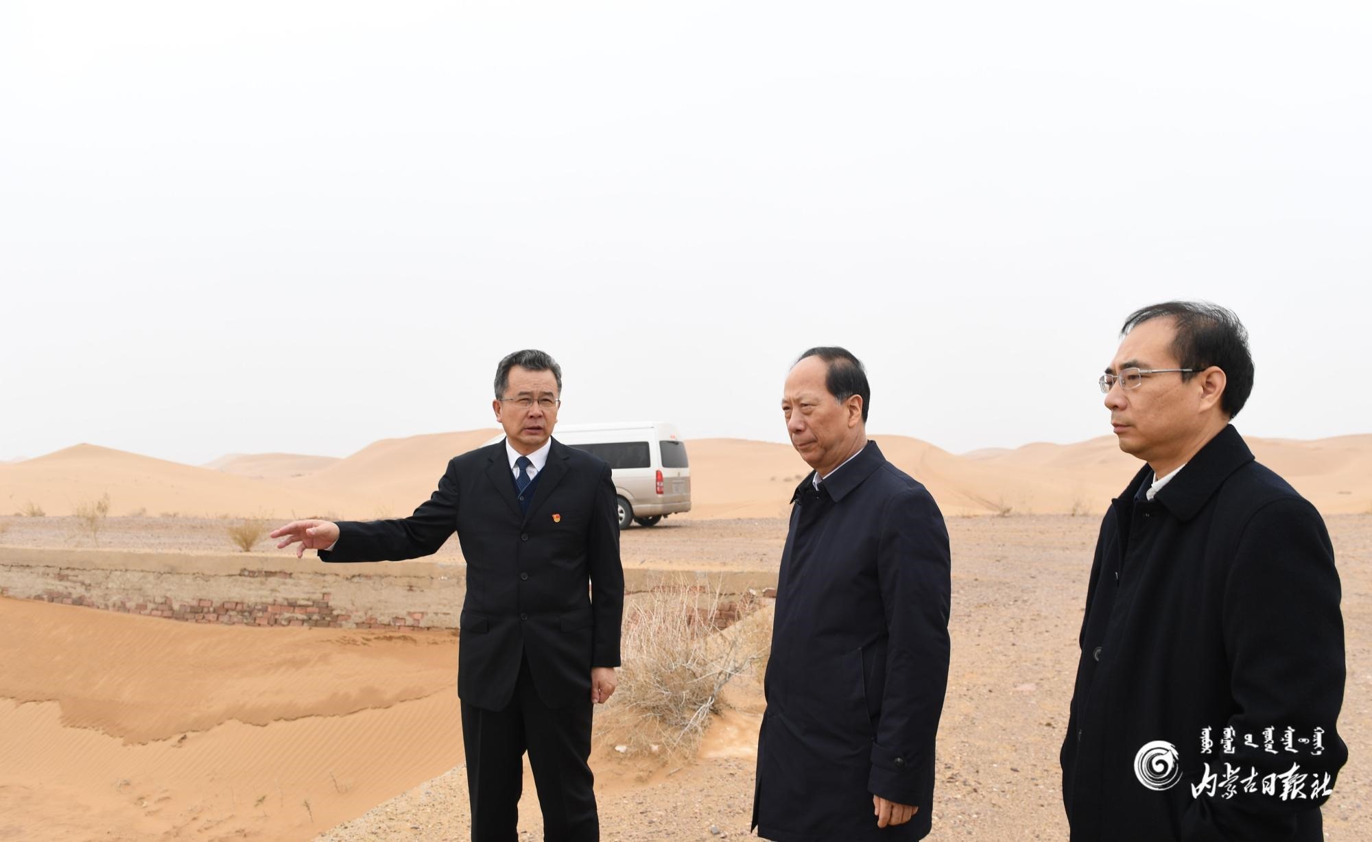 11月24日,自治區(qū)黨委書記、人大常委會主任石泰峰來到阿拉善左旗實地察看晾曬池廢水底泥處置情況。內蒙古日報記者 袁永紅攝