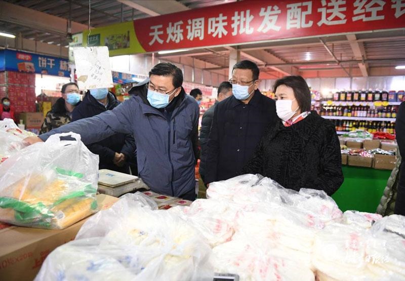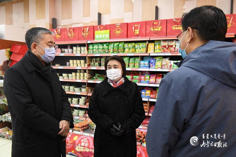 布小林來到呼和浩特市新城區(qū)福海興農(nóng)貿(mào)市場,檢查冷鏈物流疫情防控措施、市場消毒、體溫檢測和群眾戴口罩等情況,察看市場環(huán)境和經(jīng)營攤位衛(wèi)生狀況,詳細(xì)了解糧油、蔬菜、肉類、食品等的供貨渠道、日常儲備、商品價格和食品安全檢測情況。對保持干凈整潔的市場環(huán)境、營造讓群眾放心滿意的消費環(huán)境和嚴(yán)格落實疫情防控措施提出要求。臨近中午,她又來到維多利喜悅匯超市,走進銷售區(qū)域一一查看,對相關(guān)情況作了深入了解。