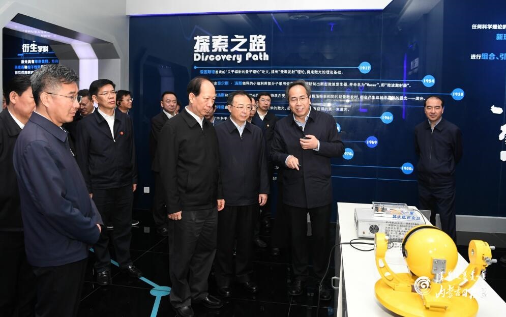 4月21日,自治區(qū)黨委書記、人大常委會(huì)主任石泰峰率內(nèi)蒙古黨政考察團(tuán)在南京先進(jìn)激光技術(shù)研究院學(xué)習(xí)考察。內(nèi)蒙古日?qǐng)?bào)社融媒體記者 袁永紅 攝