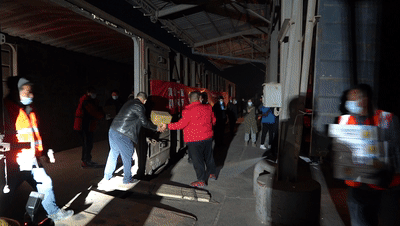 21日中午,額濟(jì)納旗東600多公里外的巴彥淖爾市,派出由50名醫(yī)務(wù)人員組成的醫(yī)療隊(duì)趕赴額濟(jì)納旗之后,當(dāng)晚又啟動(dòng)援助物資調(diào)運(yùn)工作,星夜馳援額濟(jì)納旗。22日凌晨,緊急調(diào)配的一批醫(yī)用防護(hù)服、口罩、多功能防護(hù)面罩等醫(yī)療物資,以及蔬菜、羊肉、牛奶、方便面等防疫物資緊急裝車,由專列送往阿拉善盟?! ?/p>