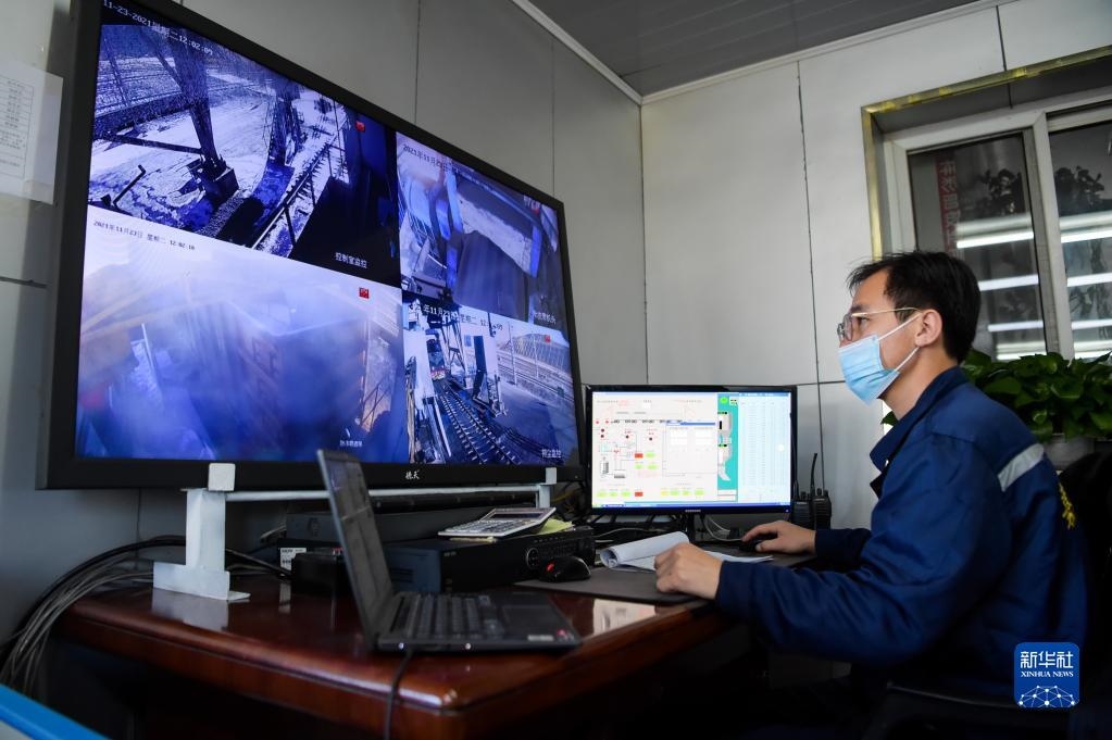 11月23日,在位于鄂爾多斯市的淮河能源西部煤電集團色連二礦罕臺川集裝站,工作人員在監(jiān)控裝煤設(shè)備運行情況。新華社記者李志鵬攝