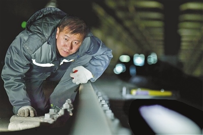昏暗、逼仄的軌行區(qū)內(nèi),軌道檢修師們焊接鋼軌時(shí)迸發(fā)的火花顯得格外耀眼,維修軌道設(shè)備時(shí)敲擊鋼軌的聲音顯得格外清脆、響亮。據(jù)田智宏介紹,一個(gè)軌道檢修師每次夜間軌行區(qū)的巡檢作業(yè)大約要走7公里路程。他和工友們每天要檢查數(shù)千個(gè)部件,測(cè)量上百個(gè)數(shù)據(jù),其中一項(xiàng)重要巡檢工作就是檢查扣件和接頭聯(lián)結(jié)零件的組成部件是否安裝牢固,螺栓是否松動(dòng)。他指了指自己腳上的鞋說:“我們的檢修對(duì)象不僅笨重且危險(xiǎn)性較高,為了防止腳部受到傷害,鞋子都是特制的防砸絕緣鞋?!?/p>