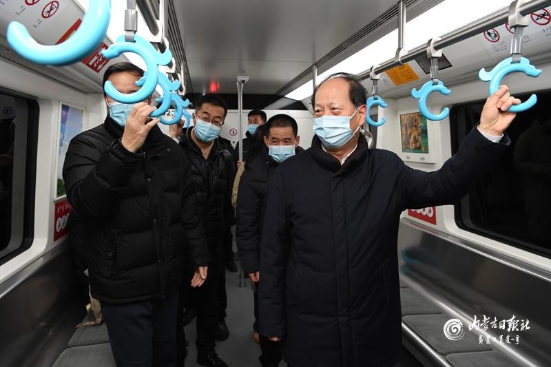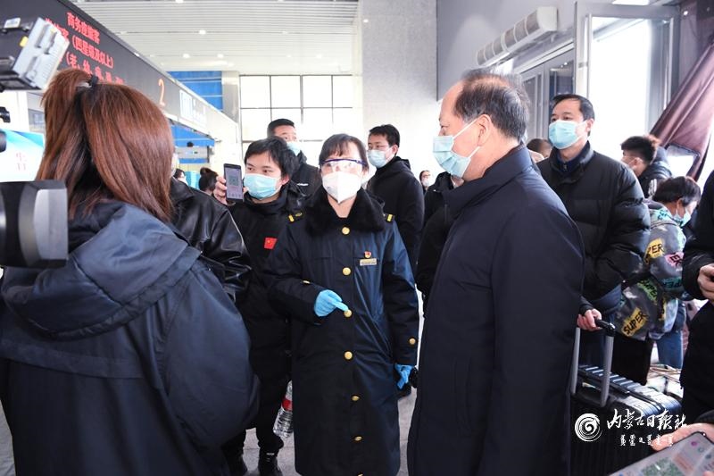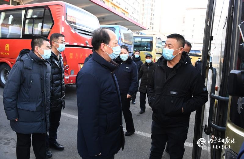 節(jié)假日期間人員流動增加,做好疫情防控和交通出行保障非常重要。石泰峰來到呼和浩特火車站、長途汽車站,看望慰問一線工作人員,實(shí)地了解各項(xiàng)措施落實(shí)情況。通過車站自助驗(yàn)證通道后,石泰峰首先來到售票處,詢問旅客購票和出行情況,叮囑車站工作人員在節(jié)假日期間要實(shí)行網(wǎng)上預(yù)約購票,避免人員聚集。在進(jìn)站口,石泰峰看到旅客掃碼后還需人工查驗(yàn)結(jié)果,他強(qiáng)調(diào),要優(yōu)化售票檢票等服務(wù)流程,充分運(yùn)用技術(shù)手段改進(jìn)旅客進(jìn)站檢查方式,切實(shí)堵塞工作漏洞。要嚴(yán)謹(jǐn)細(xì)致做好進(jìn)站測溫、驗(yàn)碼等防疫檢查,嚴(yán)格控制、科學(xué)調(diào)節(jié)客流量。要加強(qiáng)規(guī)范佩戴口罩、保持安全距離等防范措施提醒,引導(dǎo)旅客做好個(gè)人防護(hù)。在汽車站停車場,石泰峰與司乘人員交談,深入了解車輛消殺、信息登記等情況。隨后,他乘坐地鐵2號線,調(diào)研疫情防控和市民出行情況。他強(qiáng)調(diào),要嚴(yán)格落實(shí)常態(tài)化交通運(yùn)輸疫情防控要求,認(rèn)真落實(shí)客運(yùn)場站和交通運(yùn)輸工具消毒通風(fēng)、設(shè)置隔離區(qū)等措施,加強(qiáng)客運(yùn)一線服務(wù)人員日常健康監(jiān)測和定期核酸檢測,制定應(yīng)急預(yù)案,完善相關(guān)設(shè)施,讓群眾出行更加安全順暢舒心。