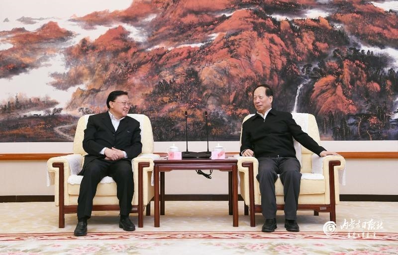 1月17日,自治區(qū)黨委書記、人大常委會主任石泰峰在呼和浩特會見中國交通建設(shè)集團(tuán)黨委書記、董事長王彤宙。內(nèi)蒙古日報(bào)社融媒體記者袁永紅攝