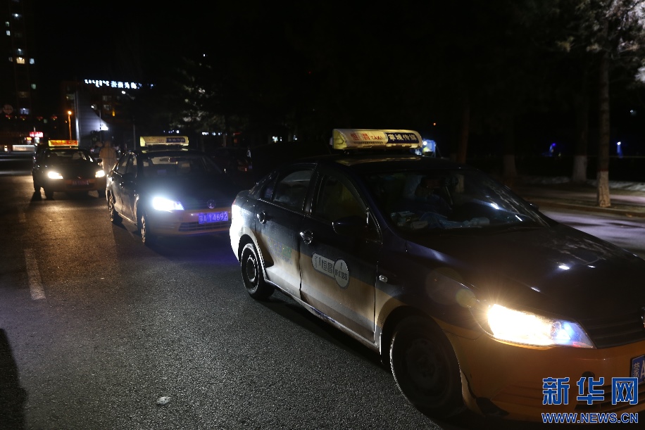 2月20日晚9點,前往指定地點運送樣本的出租車排起了長隊,完成這一次運送,司機(jī)們當(dāng)天的任務(wù)就完成了。新華網(wǎng)發(fā) 李倩攝