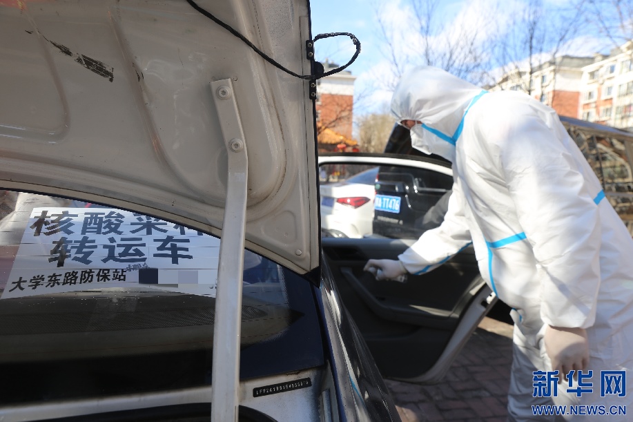 到達(dá)核酸采樣點后,籍東斌在工作人員取樣本間隙對車輛進(jìn)行消殺。核酸樣本轉(zhuǎn)運存在著一定風(fēng)險性,籍東斌說,只要按要求做好防護(hù),按規(guī)定完成工作,就沒什么問題。新華網(wǎng)發(fā) 李倩攝