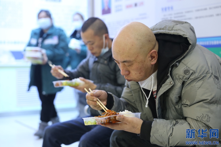 用餐時間也是轉(zhuǎn)運司機(jī)們短暫的休整時間。吃過午飯,籍東斌又要馬上投入到下一輪緊張的工作中。新華網(wǎng)發(fā) 李倩攝