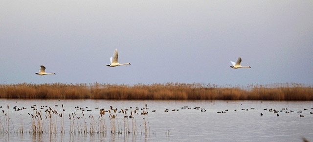 蘆葦蕩漾,鴻雁飛翔。此刻,鳥類攝影愛好者馬海明扛起他的相機(jī),駕著破冰艇駛向烏梁素海的深處。他平靜地說:“再過些日子,這里的鳥更多、魚更歡,拍出來的照片會更美更精彩。”