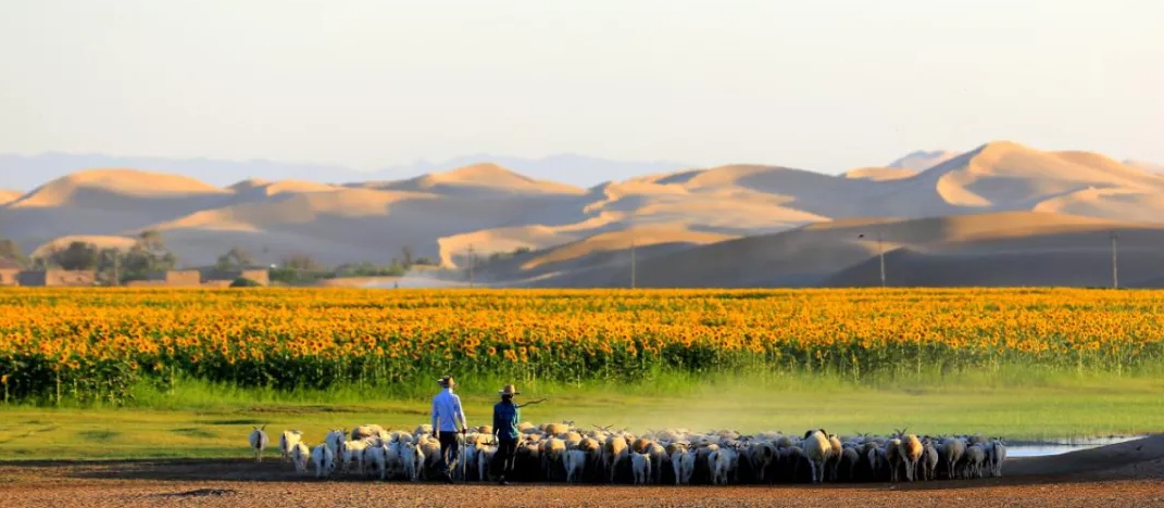 烏蘭布和沙區(qū)主要發(fā)展肉蓯蓉、釀酒葡萄、現(xiàn)代牧業(yè)、沙漠生態(tài)旅游、光伏發(fā)電五大產(chǎn)業(yè),治沙、致富兼顧,大力發(fā)展經(jīng)濟林產(chǎn)業(yè),累計在烏蘭布和沙漠種植梭梭35萬畝,接種肉蓯蓉10萬畝,“借光治沙”,實現(xiàn)光伏產(chǎn)業(yè)、生態(tài)治理與脫貧攻堅互融共贏。