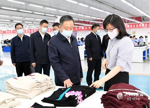 孫紹騁走進(jìn)鄂爾多斯集團(tuán)羊絨研發(fā)中心、生產(chǎn)車間和產(chǎn)品展廳,深入了解企業(yè)技術(shù)人才引進(jìn)、產(chǎn)品開發(fā)及生產(chǎn)經(jīng)營等情況。內(nèi)蒙古日報社融媒體記者 袁永紅攝