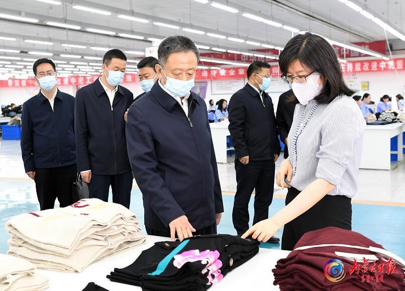 5月31日,自治區(qū)黨委書記孫紹騁來到鄂爾多斯高新技術(shù)產(chǎn)業(yè)開發(fā)區(qū)輕紡產(chǎn)業(yè)園,走進(jìn)鄂爾多斯集團(tuán)羊絨研發(fā)中心、生產(chǎn)車間和產(chǎn)品展廳,深入了解企業(yè)技術(shù)人才引進(jìn)、產(chǎn)品開發(fā)及生產(chǎn)經(jīng)營等情況。本報(bào)記者袁永紅攝