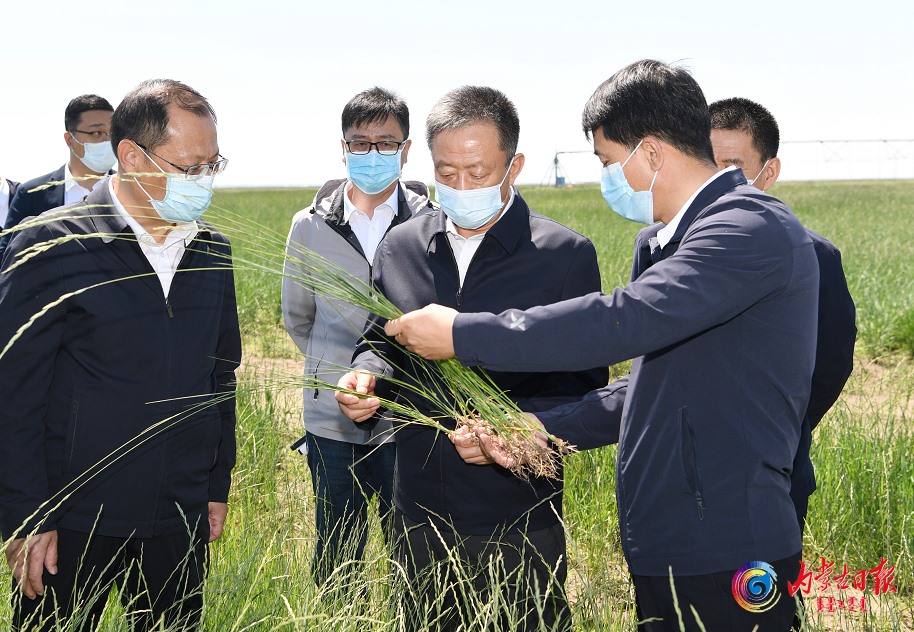 6月18日,自治區(qū)黨委書(shū)記孫紹騁在呼倫貝爾市陳巴爾虎旗羊草擴(kuò)繁基地調(diào)研。內(nèi)蒙古日?qǐng)?bào)社融媒體記者 袁永紅 攝