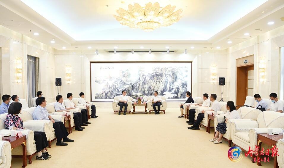 7月5日下午,自治區(qū)黨委書記孫紹騁在呼和浩特拜會全國政協(xié)副主席、民革中央常務(wù)副主席鄭建邦。記者袁永紅攝