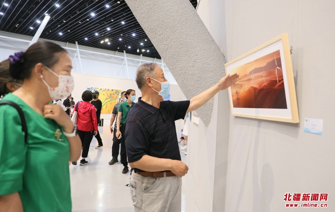 觀眾在參觀內(nèi)蒙古風(fēng)光攝影展