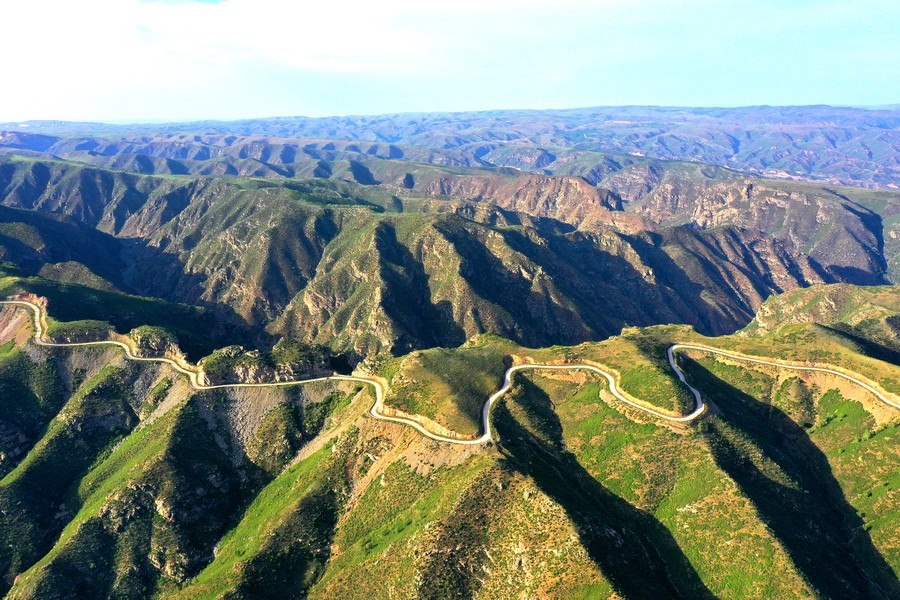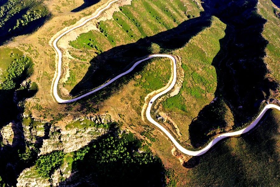 一輛轎車(chē)從井爾梁盤(pán)山公路經(jīng)過(guò)